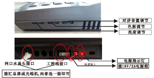 根據(jù)接線圖把單元內(nèi)所有的設(shè)備通上電源,在門口機(jī)輸入4位或3位房號后,門口機(jī)有提示聲,室內(nèi)分機(jī)按接聽后,即可對講。