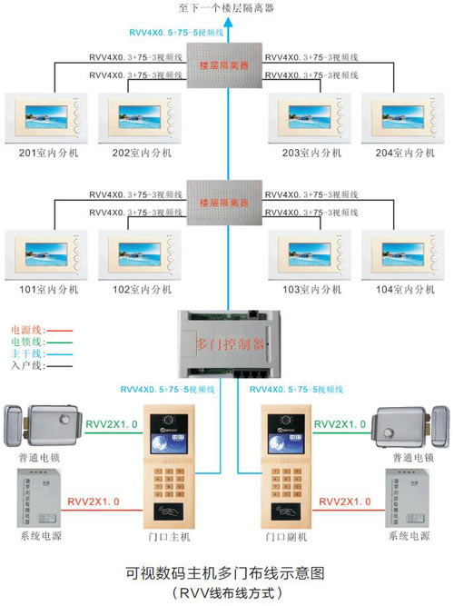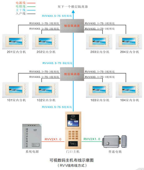主干線:10層以下布RVV4*0.5mm2+75-5視頻線,