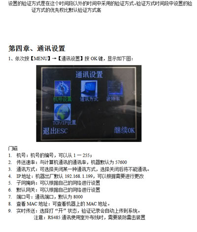 3)如TCP/IP不通訊,檢查門禁機里的IP是否設(shè)置,網(wǎng)段是否于電腦一致